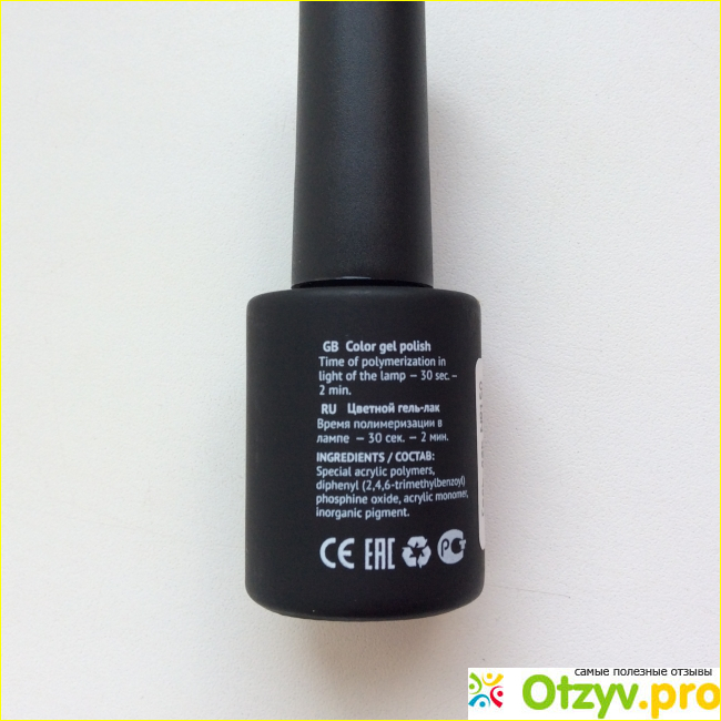 На флаконе производитель разместил некоторую информацию. В ее число входит состав, правила полимеризации, а точнее время, соблюдая строго которого можно избежать скукоженного покрытия из-за недостаточной сушки.