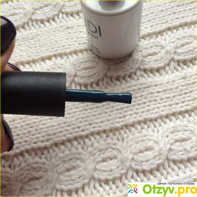 Отличительной особенностью упаковок этого гель-лака является наличие реального оттенка на небольшой типсе, расположенный на верхушке крышки. Такое решение очень удобно, особенно при выборе в магазине, когда большое количество флаконов стоят все на витрине. Да и вообще при хранении это тоже удобно.