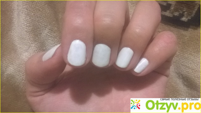 Как мне показалось, смотрится мило и невинно=) Из минусов маникюра этим цветом могу отметить тот факт, что когда руки пачкаются или потеют, на ногтях очень хорошо видно сальные пятна, что смотрится не очень опрятно, но они легко смываются мылом.
