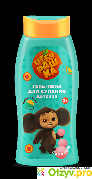 Симпатичный флакон, такой красочный, прям, смотрела бы, на него не отрываясь. На нем изображен чебурашка и шарики бабл гам. Гель – пена разработана для детей, но и взрослым можно немного упасть в детство и сделать себе волшебную пену в ванне.