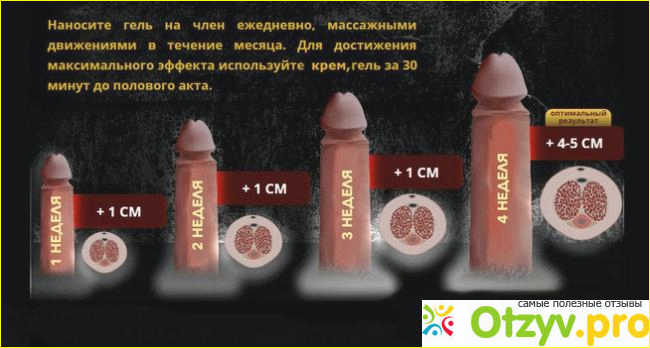 Применяли гель на протяжении 45 дней, то есть больше месяца. При этом увидели заметный результат. Член увеличился и стал толще. Не поверила бы тому, если бы не наш результат.