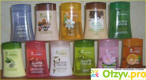 Традиционный и узнаваемый фирменный флакончик гелей для душа от «Ив Роше». Пузыречек плоский, с едва заметной талией, удобно ложащийся в руку.