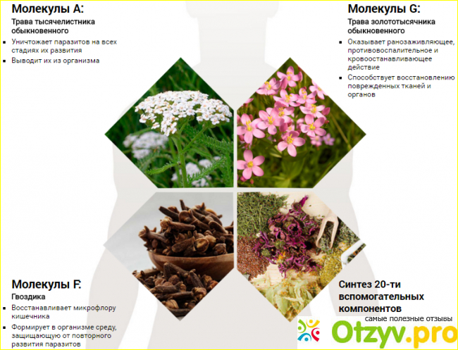Гельмифаг является полностью натуральным препаратом, не содержащим химии. Травяные компоненты препарата губительно воздействуют на гельминтов и способствуют их быстрому выведению из организма. Токсины в кровь при этом не попадают.