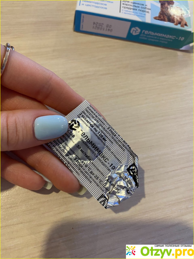 Гельмимакс это небольшие таблеточки, на них нанесены специальные риски для более удобного деления таблетки. Внутри упаковки подробная и понятная инструкция, даны разъяснения как правильно рассчитать дозировку, как дать таблетку животному.