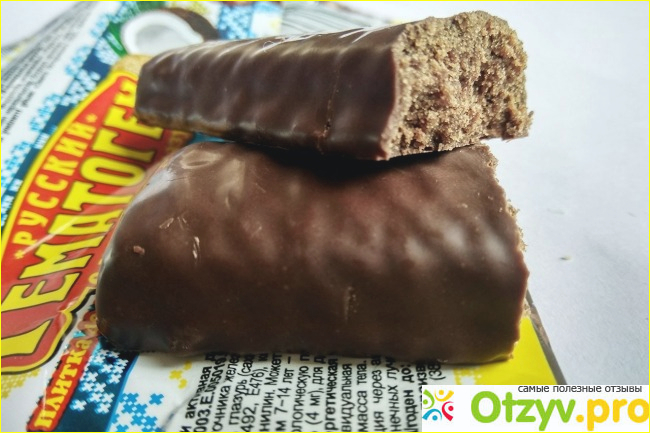 Плитка отличается продолговатой формой. Я думала, что он с какой-то глазурью, но я ошиблась, гематоген самый обычный. Дочка тоже подумала, что он в шоколаде. Но, к сравнению, кокосовый гематоген в глазури на втором фото.