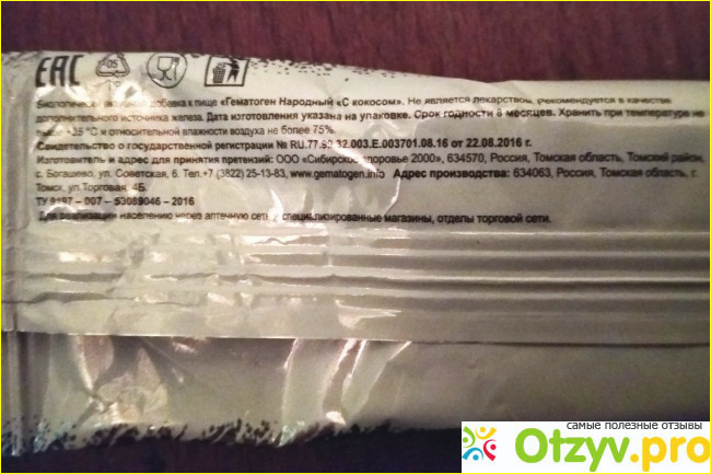 Этот батончик Гематоген я брала в аптеке. Увидев название «Народный» я уже подумала, что это наше производство. А нет, Россия, село Богашево в Томской области.