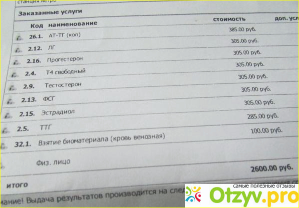 При оформлении одного заказа могут оформить 5% процентную скидку на следующее посещение. Можно сдать кровь на гормоны и другие всевозможные анализы. Но это будет уже дороже.