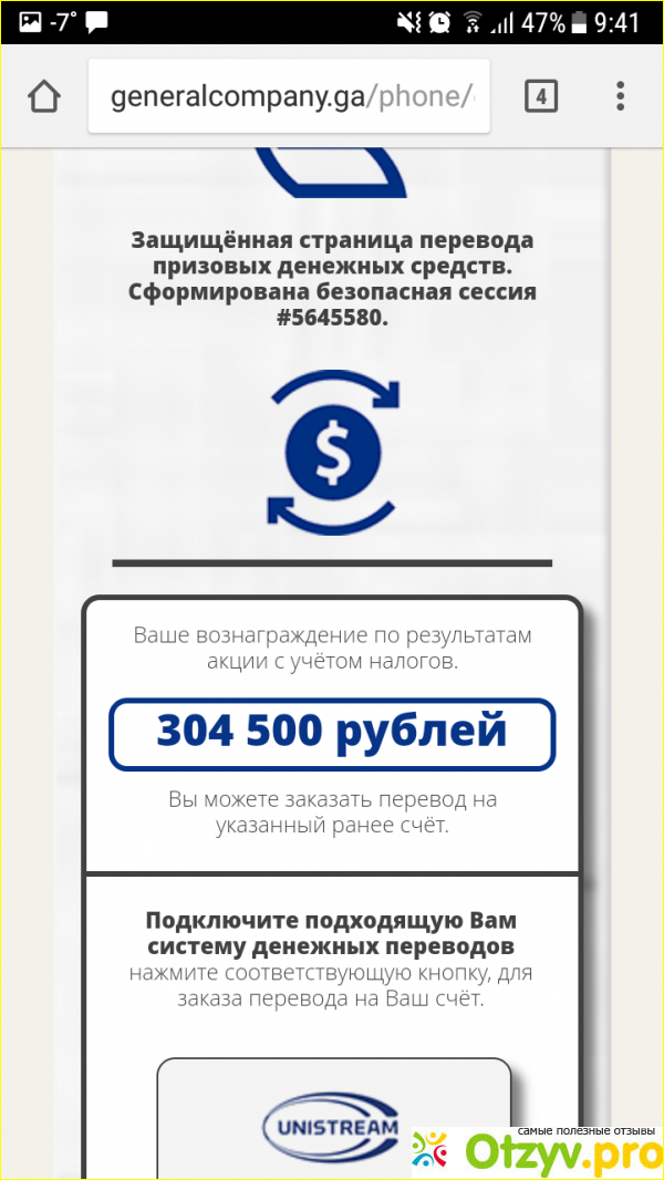 То, что ждет нас после обследования, уже давно понятно, но все же показывает это на практике. Нажмите соответствующую кнопку, мы увидим какие – то глупые вопросы, на которые даже не отвечаем - отправьте пустую форму, и она придет. Что это, если не мошенничество? Затем предположительно начался процесс генерации призов. Четыре тысячи рублей, кстати, как есть на нашем счету (на который никто не ответил). В итоге мы якобы выигрываем триста пятьдесят тысяч рублей. Подарок, кстати, всегда один и тот же. Чтобы получить эти средства, нужно заплатить налоги, а целых тринадцать процентов выигрыша – и это сорок пять тысяч пятьсот рублей. Но добрый дядя в несуществующей компании был готов покрыть девяносто пять процентов требуемой суммы, а платить надо всего 199 рублей. Тонкая попытка развести. Но спросите себя – если они берут такую значительную стоимость, почему бы не покрыть оставшиеся сто девяносто девять рублей? Какой смысл требовать эти деньги от победителей акции?
