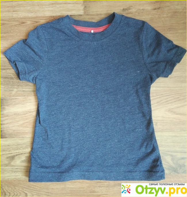 И наконец третья - обычная футболка темно-синего цвета. Такая футболка отличный вариант одеть под рубашку. Изделие тоже пошито очень качественно, все швы ровные и аккуратные, здесь придраться не к чему. Но, с этой футболкой меня ожидал неприятный сюрприз. Я почему-то, была уверена, ТМ George использует для пошива детской одежды только натуральные материалы, а в этом случае оказалось, что нет. Да и сам материал значительно тоньше, чем в предыдущих двух вариантах, плюс со временем ткань начала скатываться.