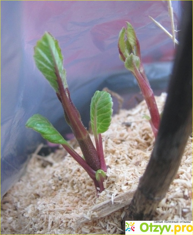 Еще раз хочется остановиться на способах черенкования. Черенок с «пяткой» — это побег, срезанный с частью ткани корнеклубня. Здесь располагаются спящие почки возобновления. В народе бытует мнение, что такой черенок способен развить более мощную корневую систему. Мои длительные наблюдения на протяжении многих лет свидетельствуют об обратном. Побег без «пяточки», срезаный под последним междоузлием, более быстро и легко подвергается укоренению. К осени сформировывается полноценный корне-клубень. Кроме того, при этом способе сохраняются почки возобновления, а следовательно, с маточника можно снять дополнительное количество черенков.