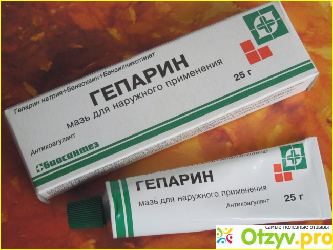 Гепарин (Гепариновая мазь) является антикоагулянтом прямого действия, активным веществом в препарате является гепарин натрия 1000 ME. Что такое Гепарин, я думаю, большинство из вас знает – это вещество, которое может остановить свертывание крови и растворить существующие сгустки. Он широко применяется при лечении любого вида патологии сосудистой системы, в том числе варикозного расширения вен нижних конечностей, геморроя, для рассасывания шишек после внутримышечных инъекций, для рассасывания гематом, ушибов и тому подобного. Гепарин известен своими противовоспалительными свойствами, противоотечным, обезболивающим, активизирует микроциркуляцию в крови, повышает скорость рассасывания тромбов, улучшает лимфодренаж.