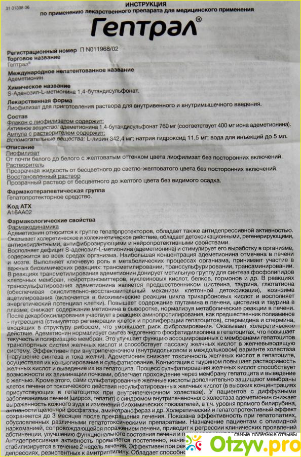 Правда, Гептрал хорошо показал себя в лечении токсических алкогольных поражений печени, хотя частоты снижения смертности и осложнений после лечения отмечено не было.
