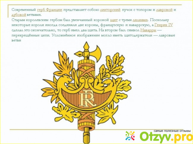 Оказывается, имеющийся в настоящее время, у Франции герб, пока не утвержден, имеется ввиду официально, и вообще, что удивительно, он девятый по счету и создан лишь в пятидесятых годах двадцатого века. И все это из-за всяких революционных событий, которые происходили в этой стране и приводили к смене власти. Мы можем на примере нашей страны понять механизм этих событий, вспомните, когда в России случилась смена власти, страсть к переименованиям у наших, с позволения сказать, вождей, была просто маниакальной. Страна задыхалась от безработицы и голод подступал вплотную, а наши лидеры тратили баснословные суммы на переименования городов и улиц. Второй пример-это герб России, раньше это были серп с молотом, а теперь-двухголовый орел, которого оппозиция называет мутацией,.. Примерно так было и с Французским гербом. Власть менялась-менялся герб.