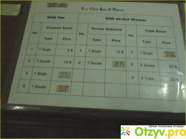 Это прайс на 2016 год. Дешевые комнаты по 5 и 10 $, с душем и туалетом уже по 13 и 18.