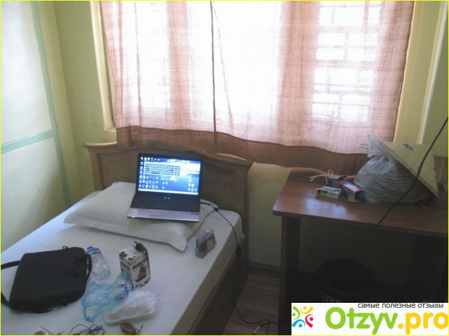 Комната за 5$ довольно тесная, стоя к стене я сфотографировал окно, кровать, стол, под столом урна