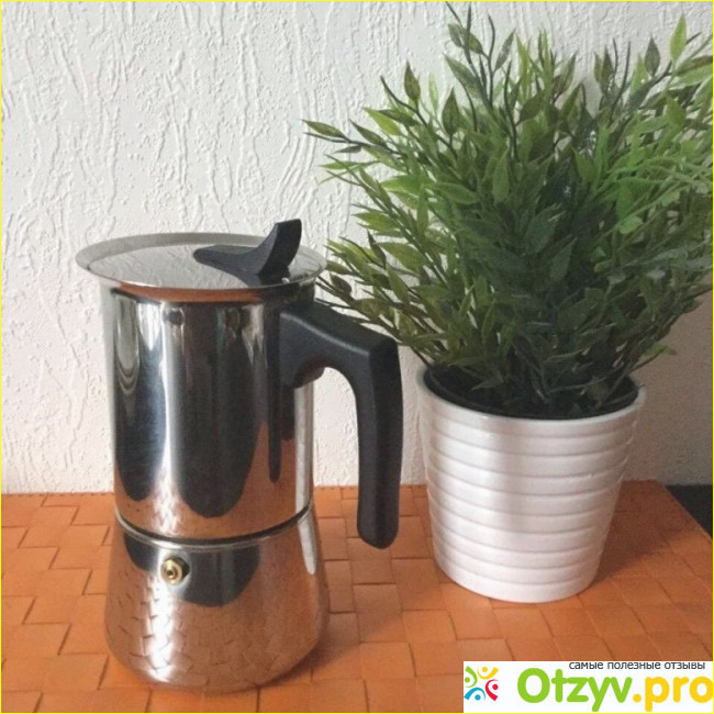 Выполнена данная модель из нержавеющей стали, она имеет стильный стальной корус, который выглядит очень современно и украсит любую кухню. Бренд прописал объем воды в триста пятьдесят миллилитров. Она идеально подойдет на шесть чашек. Сам по себе корпус кофеварки состоит из трех емкостей. И включает в себя отсеки для воды, для молотого кофе и для готового кофе. Данная модель предназначена для всех видов плит, кроме индукционных. В ней можно варить как эспрессо, так и другие виды кофе (например капучино, латте, мокачино, американо и прочие).