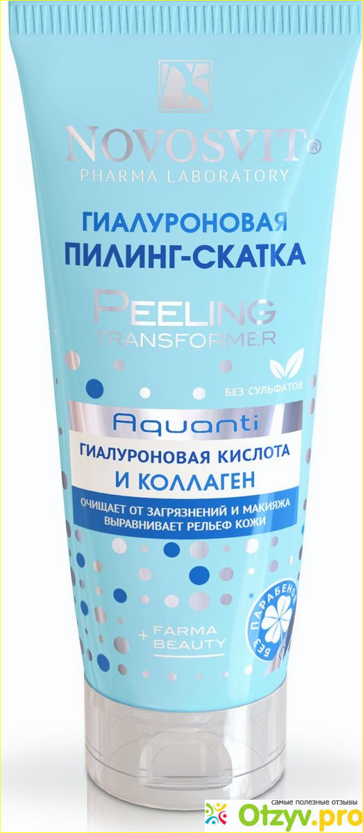 В гиалуроновый пилинг-скатка NOVOSVIT Aquanti Peeling transformer входит как раз фруктовая кислота, гиалуроновая кислота и коллаген. Пилинг подходит для очищения комбинированной чувствительной кожи.