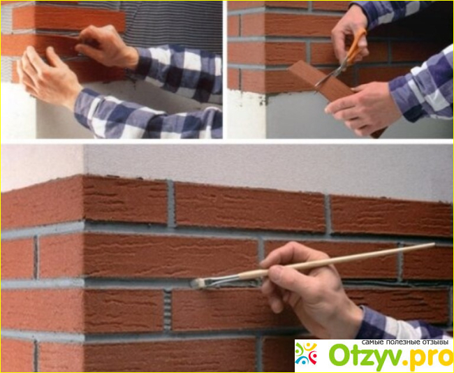 Материал довольно удобен в применении, но цена на него кусаются. К примеру упаковка, где находится 50 штук такого кирпича с размерами по длине 24 см, ширине 7 см, и толщиной 3 миллиметра стоит на многих интернет-площадках в среднем в районе 1300 рублей. Именно это является сдерживающим фактором по распространению данного виды отделочных материалов. В принципе ничего сложного в монтаже такого кирпича или плитки нет. Клей можно приобрести также на интернет-площадках либо в строительных магазинах уже готовым. После этого вы его наносите шпателем и приклеиваете, продвигаясь по задуманному направлению. Затем разравниваете швы, что удобнее делать смоченной в воде и кисточкой.
