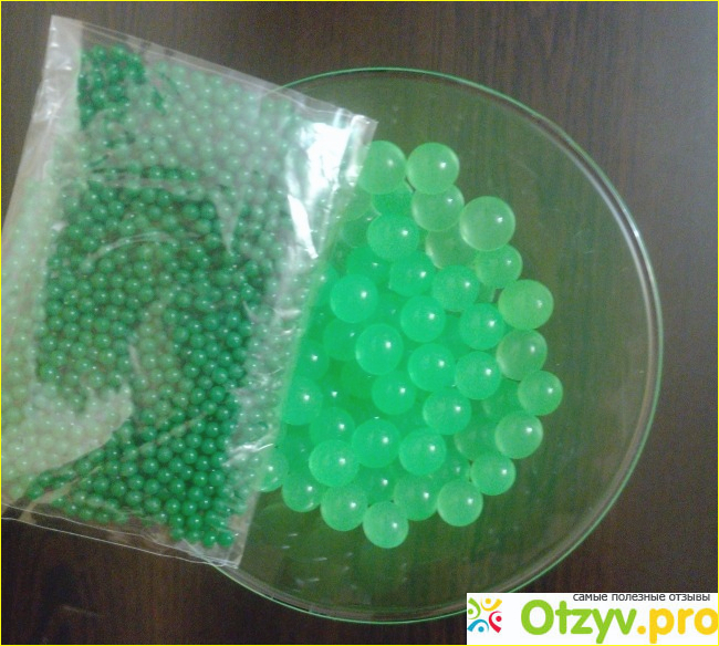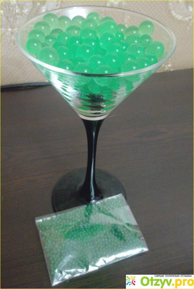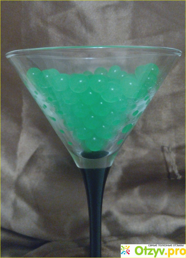 В итоге у меня получился поный бокал красивых зеленых шариков, цвет шариков по мере наполнения водой светлеет: