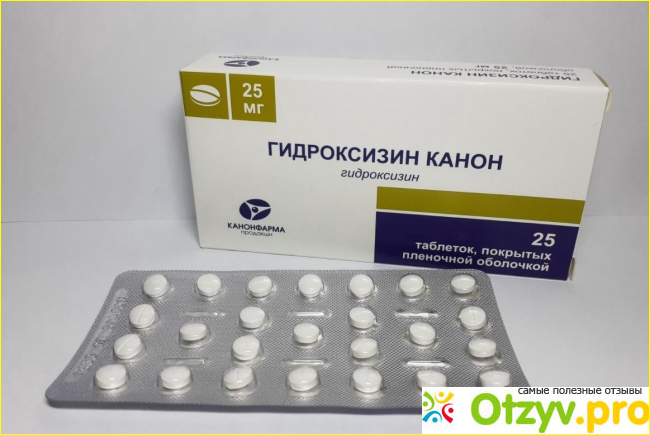 Гидроксизин - антигистаминный препарат, блокирующий H1и мускариновые рецепторы. Гидроксизин оказывает противорвотное и седативное действие, которое, как считается, опосредовано его действием на мозг, используется для лечения тревожности, связанной с психоневрозами, зуда, вторичного по отношению к аллергическим состояниям, таких как хроническая крапивница, атопические или контактные дерматозы, а также при опосредованном гистамином зуде. Кроме того, он используется из-за его седативного эффекта до и после общей анестезии. Гидроксизин - наиболее эффективный и длительно действующий антигистаминный препарат.