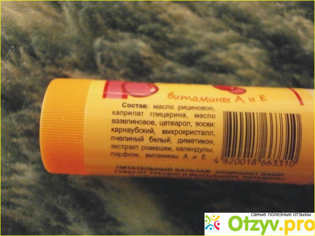 В нашей семье было два таких бальзама - апельсиновый у меня и банановый у племянницы. По свойствам они не отличались, только по запаху. Ароматы очень приятные - нравились и мне, и ребенку. Что касается текстуры, то бальзам больше ощущается, как увлажняющий, чем питательный, на губах. Также присутствуют мелкие крупинки. Но ощущения после нанесения приятные - кожа губ быстро смягчается и появляется глянец. При регулярном использовании заживают и не появляются трещинки, нет шелушения. Правда, немного расстроило меня средство - шайбочка быстро сломалась и бальзам перестал выкручиваться, поэтому приходилось наносить его при помощи кисточки.