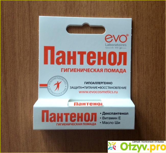 Из широкого ассортимента гигиенических помад я для себя выбрала «Пантенол» от марки EVO, как одно из самых бюджетных, но и качественных гигиенических помад.