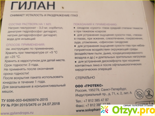 Гилан комфортно закапывать, он не щипет глаза. После закапывания глазам сразу становится легче. Пропадает ощущение "песка в глазах", перестали слезиться. Закапываю по инструкции, по 2 капли, могу капать до 5-6 раз в день.