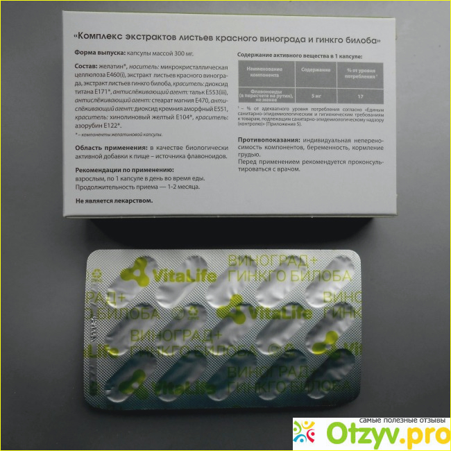 Мы стали принимать этот комплекс растительных экстрактов растений, о которых я раньше читала много положительных отзывов не только в интернете, но и в медицинских газетах и журналах. Несколько лет назад муж принимал экстракт листьев красного винограда, а я - гинкго билобу. Все других брендов. Результаты нам тогда понравились. А этот препарат должен совместить пользу обоих растений. Производитель утверждает, что это средство способствует улучшению мозгового и периферического кровообращения, а также оказывает благотворное влияние на память и концентрацию внимания.