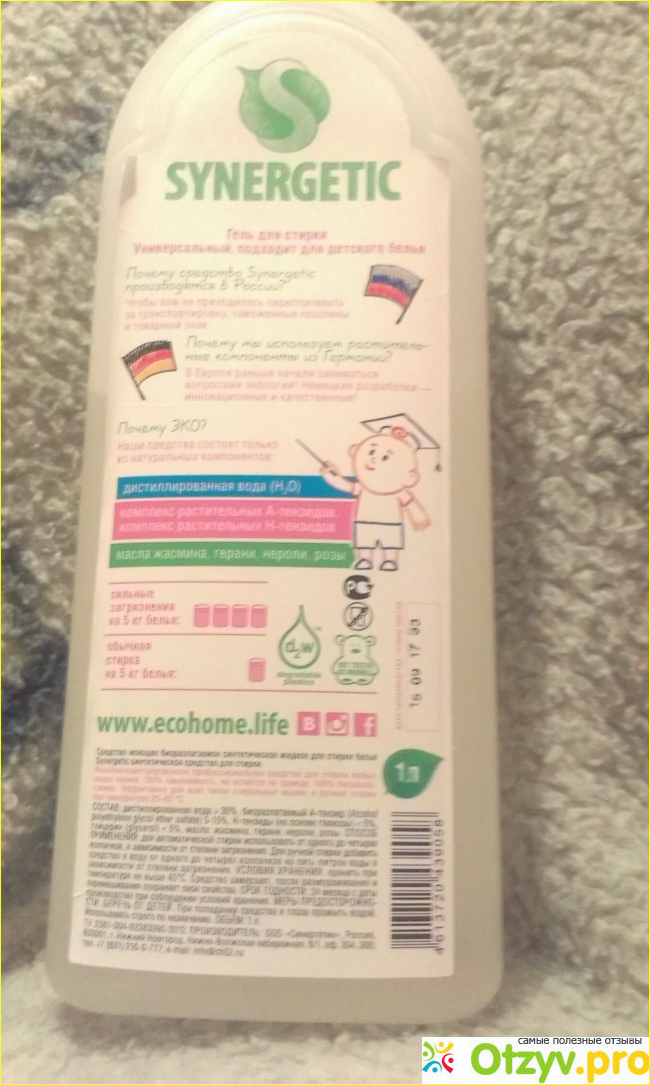 Всем моим читателям доброго времени суток! После удачного приобритения геля для мытья посуды " Synergetic" , я решила продолжить своё знакомство с продукцией этой фирмы и прикупила для себя гипоаллергенный гель для стирки " Synergrtic", который подходит для стирки детского белья- для меня это актуально в семье есть маленький ребёнок, универсальное средство: для цветного и белого белья, для всех видов тканей. Вообщем даже не используя уже заранее много плюсов увидела.