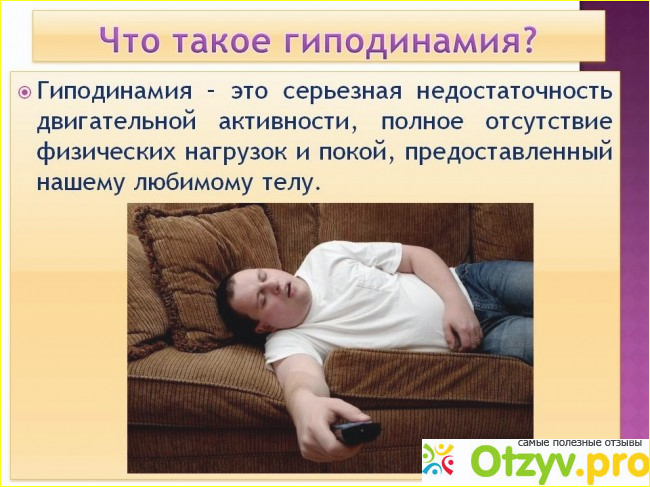 Имеются три формы гиподинамии:1 гипоэргия-мало движений(количество выполнений); 2 гипокинезия- мало разнообразия в движении; 3 гипотония- малоинтенсивные движения. Для чего нам необходимы движения: для поддержания гомеостаза в организме, двигательная активность способствует нормальному тонуса мышц, сосудов. Для нормализации функций организма всех органов и систем. Если человек ограничен в нормальной физической нагрузкой из за основного патологического процесса(заболевания). Прежде необходимо заняться его лечением и постепенно двигательная активность человека восстановится в полном объёме. В случае моего брата, то врач лечебной физкультуры дала комплекс упражнений для данного заболевания, которые можно выполнять дома самим. Предложила брату походить в бассейн плавать, это самое лучшее средство для опорно-двигательного аппарата и мышечной системы, на это он согласился. Лично я занялась его питание, иначе говоря посадила на диету для избавления лишних килограммов. Оказывается лень передаётся генетически, и если этот ген активируется вот вам и гиподинамия, и постоянная борьба