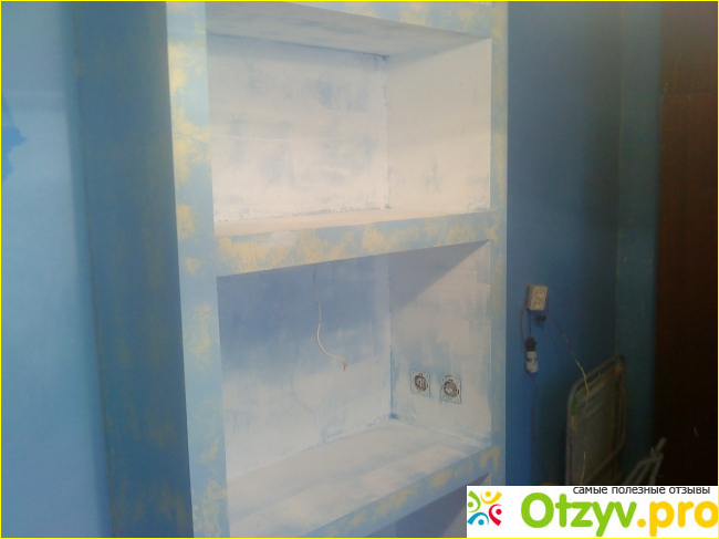 Также, я делал из гипсокартона встроенную полку. Вот как она выглядит в итоге.