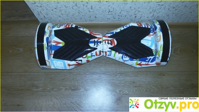 Итак, цена 23000 рублей. Представляет из себя плоскую платформу на колесах, управляют им при помощи тела. В магазине был большой выбор расцветок, но мы выбрали с молодежным рисунком, так выглядит наш гаджет: