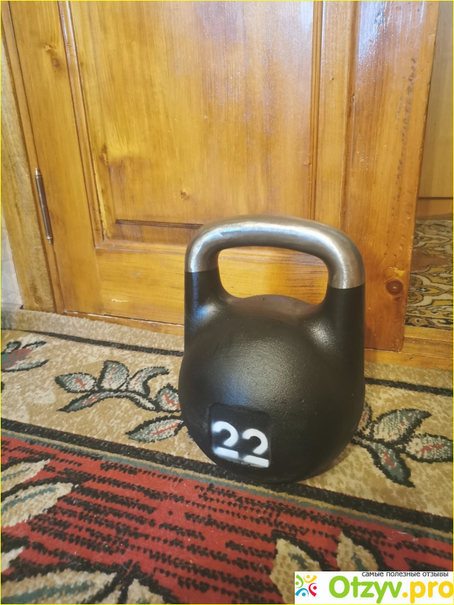 Заказал в спортжиме гирю 22 кг, очень порадовало, что у них большой весовой разброс, а не только стандартные 16, 24, 32 кг. Конечно, пока тяжеловато заниматься, но я этого и хотел. К внешнему виду и функциям снаряда претензий нет. Гиря окрашена черной краской, подтеков нигде не обнаружил. Рукоятка удобная, хорошо отполированная и довольно длинная. При желании можно взяться двумя руками. Попозже еще тяжелее возьму.