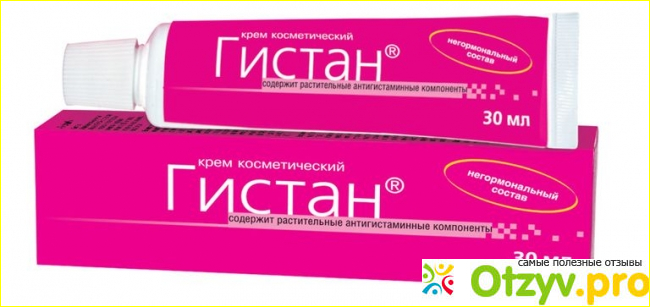 Гистан-косметический крем, содержит растительные антигистаминные компоненты. Крем имеет специфический запах, приятный, но косметический. Запах крема больше похож на растительный, скорее всего пахнет лавандой, чем химический.