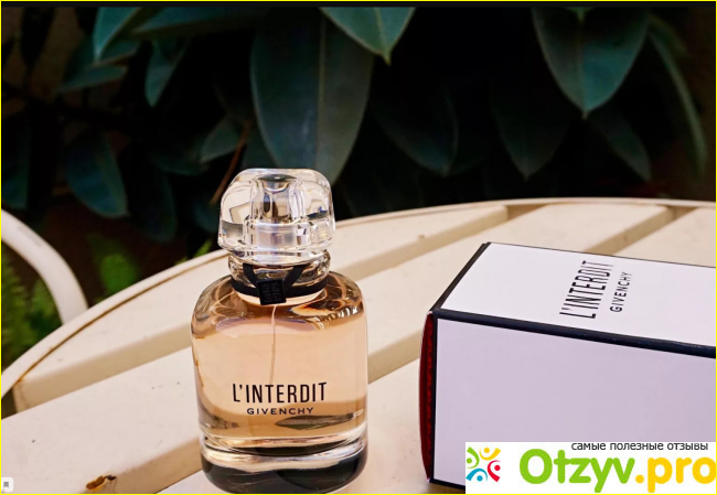 Givenchy L'Interdit — прекрасное многолосое звучание фруктов и цветочного букета, в меру сладкий, но не приторный и нет в нем резкости. Во время влажности он звучит очень томно и нежно, уходит в слащавость. А вот в холода и во время дождя более уверенный, прохладный, свежий.