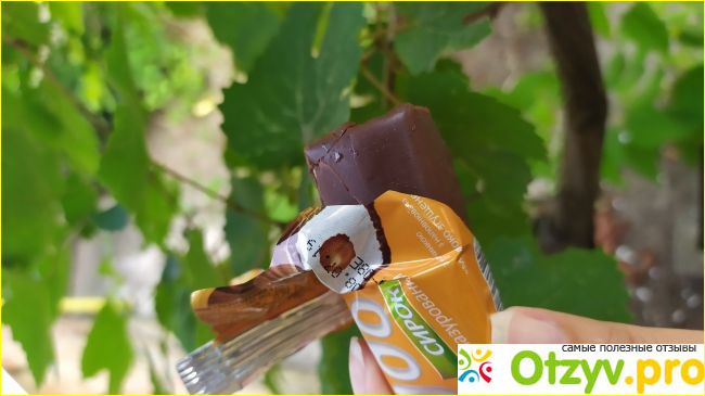 Сверху вкусненькая ароматная шоколадная глазурь. Глазурь не имеет растительного привкуса, не смотря на то что в составе пальмовое масло.