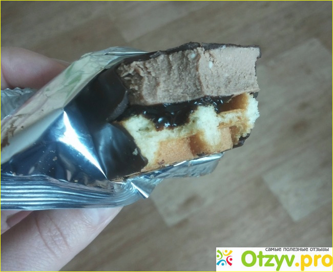 О десерте. Верхняя творожная часть здесь идет с добавлением какао, нижняя часть – это венская вафля (сладкая и вкусная), а соединяет обе части начинка – довольно жидкий по консистенции наполнитель с конфетно-трюфельным вкусом. И всё покрыто шоколадом. Только положительные эмоции дарит нам торговая марка «Тимоша». Рекомендую к покупке. И, спасибо, за просмотр отзыва!