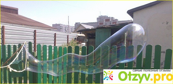 Такие пузыри пускали у ребенка на Дне рожедении, надо ли говорить, что дети были довольны. И взрослые тоже не удержались, пошли попускали с детьми гигантские пузыри. А то, что они были гигантские - я не преувеличиваю. Пузыри получались длинные, до полуметра длиной, ширина же зависит от приспособления, через которое вы из пускаете.