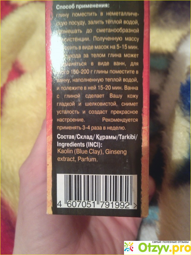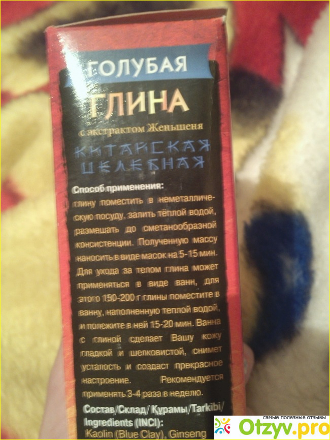 Мне, как практически новичку в вопросах приготовления масок из косметической глины, очень пригодилась та информация о способе применения голубой тибетской глины, которую производитель разместил на боковой поверхности коробочки.