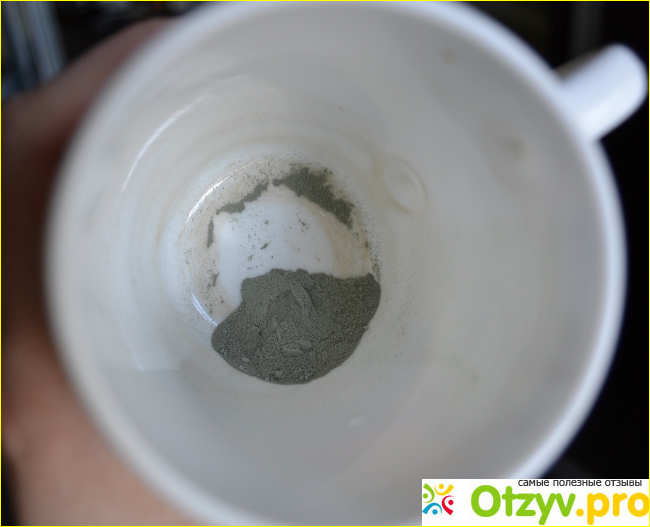 Вот так выглядит содержимое пакетика, а точнее порошок глины в чашке: