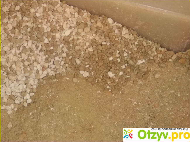 А вот ожидаемого эффекта от намокания материала я не увидела. К сожалению он просто превращается в мокрый песок и оседает на дне лотка толстым слоем.