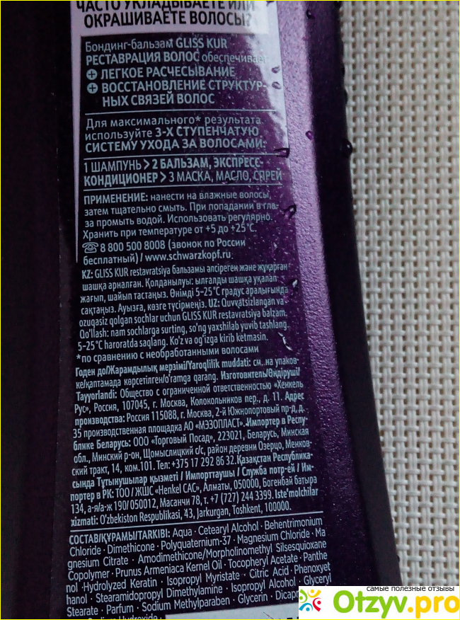 Не буду покупать. GLISS KUR БОНДИНГ-БАЛЬЗАМ РЕСТАВРАЦИЯ ВОЛОС отзывы - развод или правда?