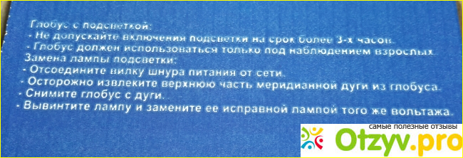 При необходимости, лампочку можно заменить. Как это сделать, написано прямо на коробке, в которую были упакованы глобусы.