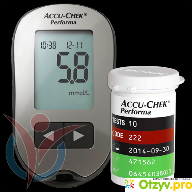 Принцип работы Акку Чек Перформа прост: для того, чтобы начать работу с ним, достаточно включить глюкометр, нажав на кнопку сверху. После этого можно вставить тест полоску и ожидать. Буквально через 2-3 секунды можно измерять уровень сахара в крови. Есть еще другие функции, но ими я пока не пользовалась.