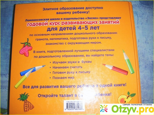 Буквы сынок выучил без этих занятий, но сейчас хорошо выполняет интересные задания. Думаю, что для ребенка будут понятными эти развивайки ближе к 5 годам. Все слова написаны большим шрифтом, картинки красочные, много картинок для разукрашивания. В целом очень довольна этой книгой. Эта книга из серии книг Ломоносовская школа. Я уже приглядела и другие книги из данной серии.