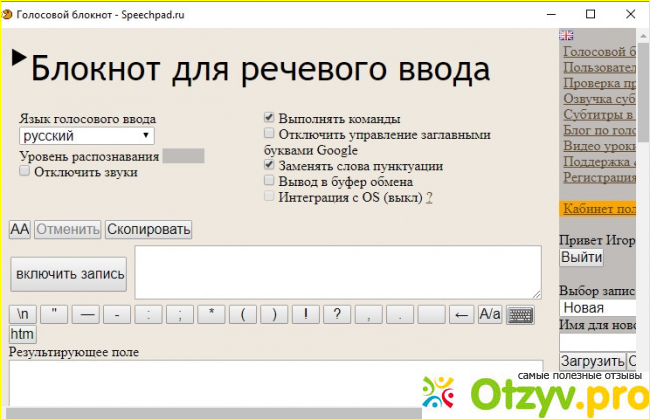 Перед началом использования программы нужно выбрать удобный язык. далее нажать кнопку "Включить запись". просто болтаю, а голос переводится в текст. фото текст копируешь и вставляешь туда куда нужно. Все знаки препинания можно выделить голосом. Единственный момент, все слова нужно проговаривать чётко, иначе программа текст некорректно. А также знаки препинания можно ли расставлять вручную.