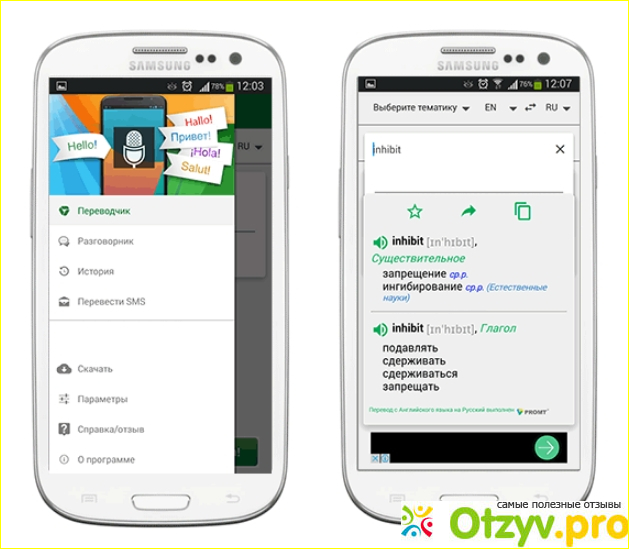 В приложении есть три функции в одном. Это электронный словарик, мобильный транслятор и разговорник. К тому же есть тематики перевода помимо языка: биография, путешествия, учеба, общение в социальных сетях, знакомство, ПК и другие.