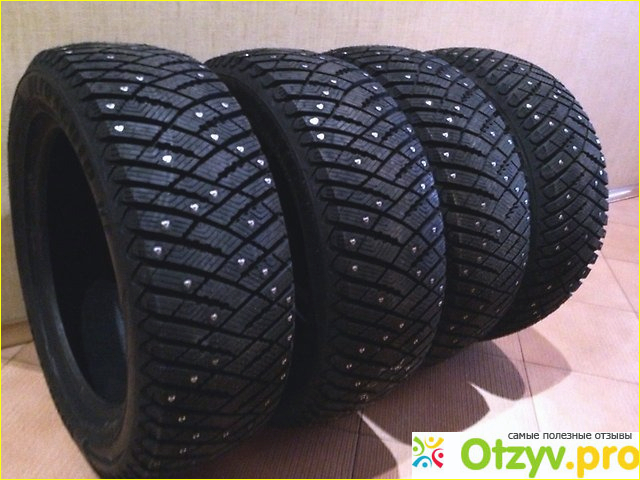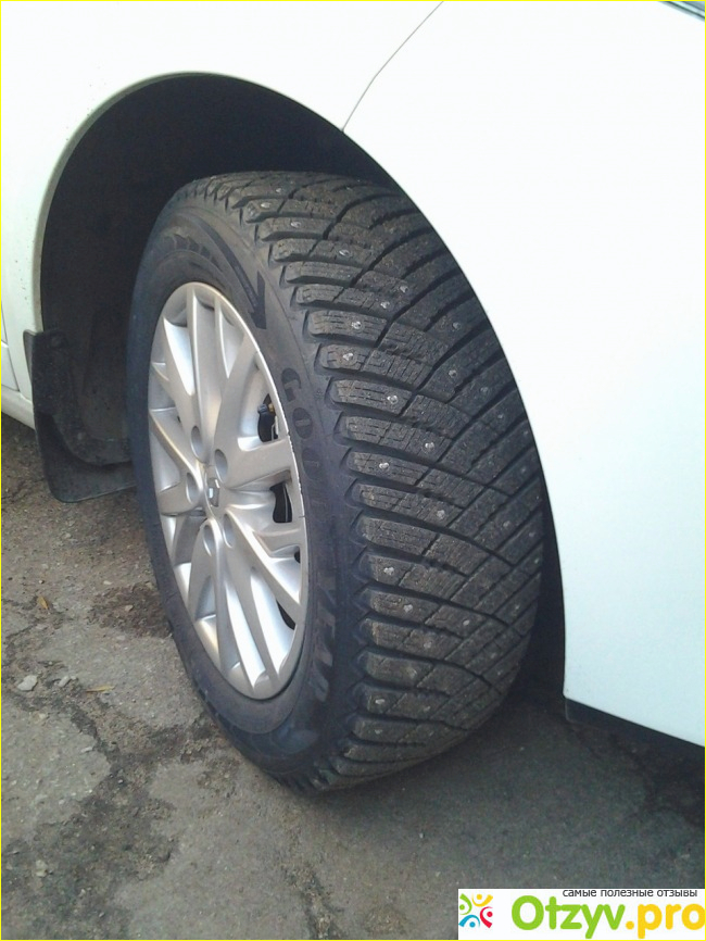 Начнем с особенностей шин, что делает их по-настоящему уникальными. Во-первых, это шипы. Их конструкция не такая как у других шин. Они имеют специальную вставку, выполненную из твердосплавного материала. Сам шип имеет острые грани, что обеспечивает надежное и уверенное сцепление на льду. Та часть шипа, которая находиться внутри резины, тоже имеет специальную конструкцию, которая препятствует его вылету или прокручиванию при любых скоростях и нагрузках, при движении по льду, снегу или чистому асфальту. Проездив на этих шинах первую зиму, у не потерял ни одного шипа, хочу напомнить, что на машине я езжу каждый день, как по городу, так и по трассе. Считаю, что главное в зимних шипованных шинах в том, чтобы шипы сохранялись при любых условиях и GoodYear Ultra Grip Ice Arctic обеспечивает это. Еще одна особенность этих шин это установка шипов. Обычно они стоят рядами, здесь шипы установлены не симметрично. Благодаря этому во время контакта с дорогой участвует еще больше шипов, хотя при этом общее количество шипов в шинах меньше, чем в обычных шинах. А именно благодаря тому, что шипов в шинах меньше, их вес меньше.