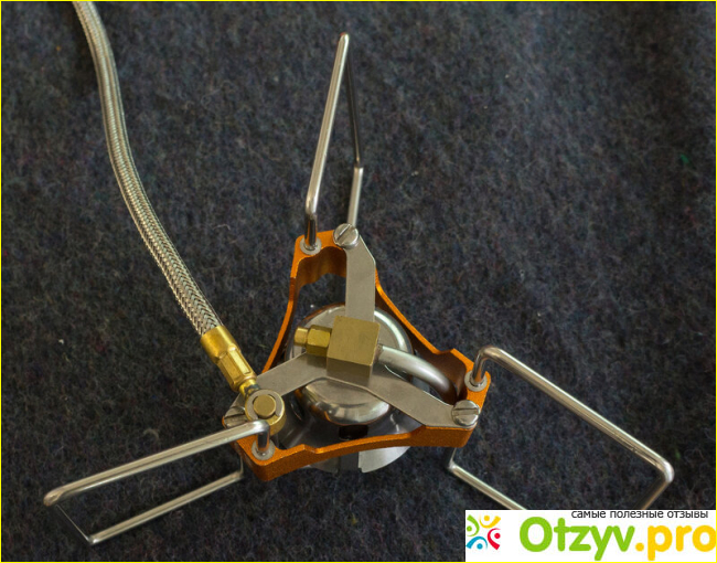 Горелку можно установить в любом удобном месте. Она смонтирована так, что держится на трёх железных ножках, на которые нанесены поперечные насечки. Это хорошая предусмотрительность от производителя против скольжения прибора.