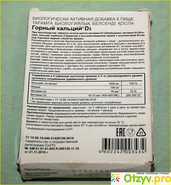 Горный кальций д3 с мумие отзывы цена |